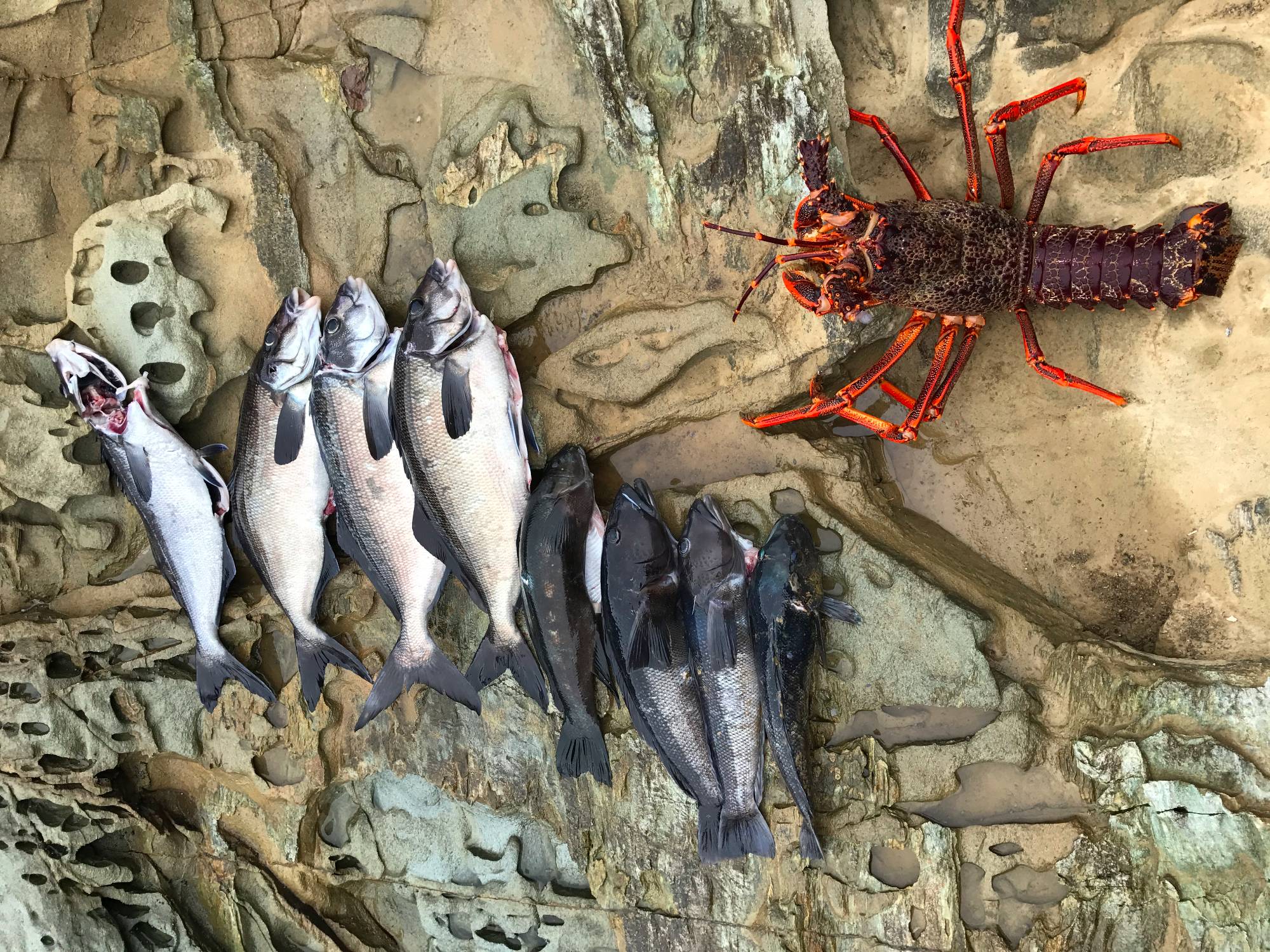 Breath hold diving for paua (NZ abalone), Shellfish and Lobster.